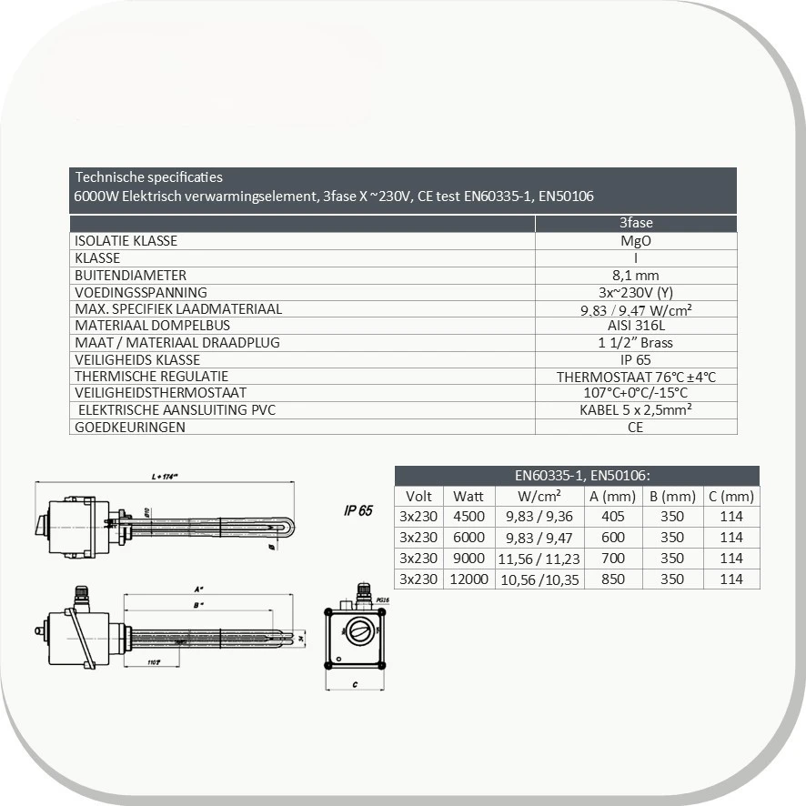 3-Fase Verwarmingselementen (4,5kW – 12kW)