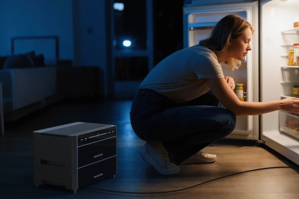 Bij een stroomstoring fungeert deze poort als noodstroomvoorziening, zodat essentiële apparaten blijven werken. Je kunt ook preventief een apparaat aangesloten laten; bij uitval schakelt het systeem automatisch over op noodstroom. Praktisch en geruststellend.