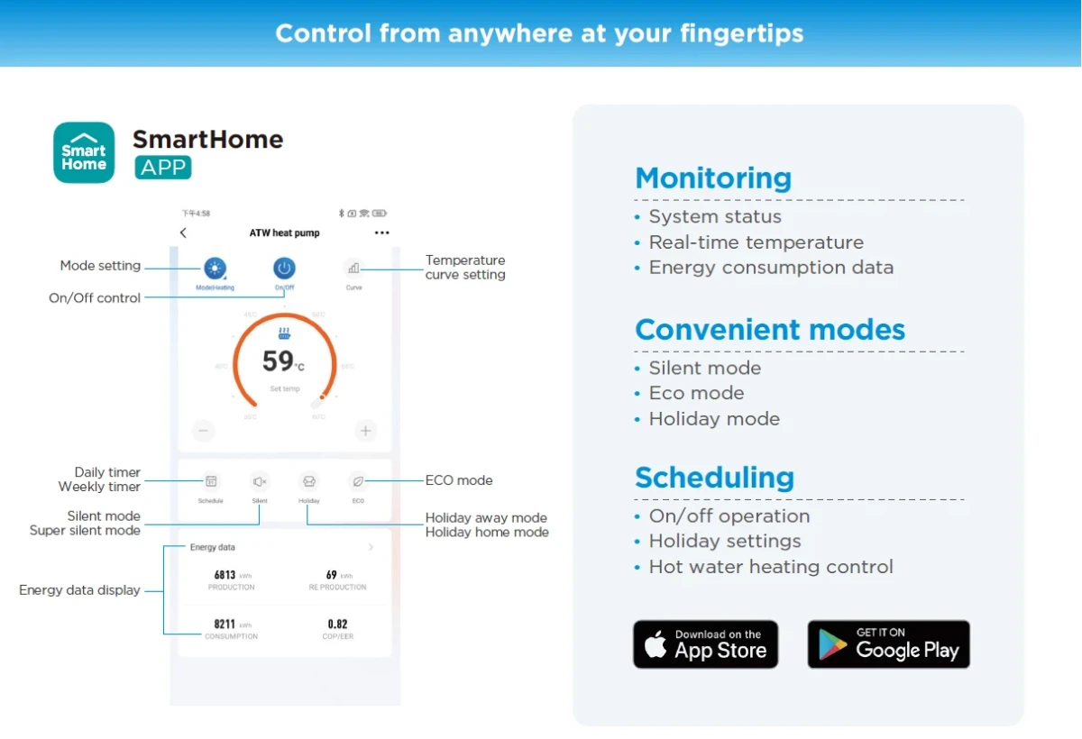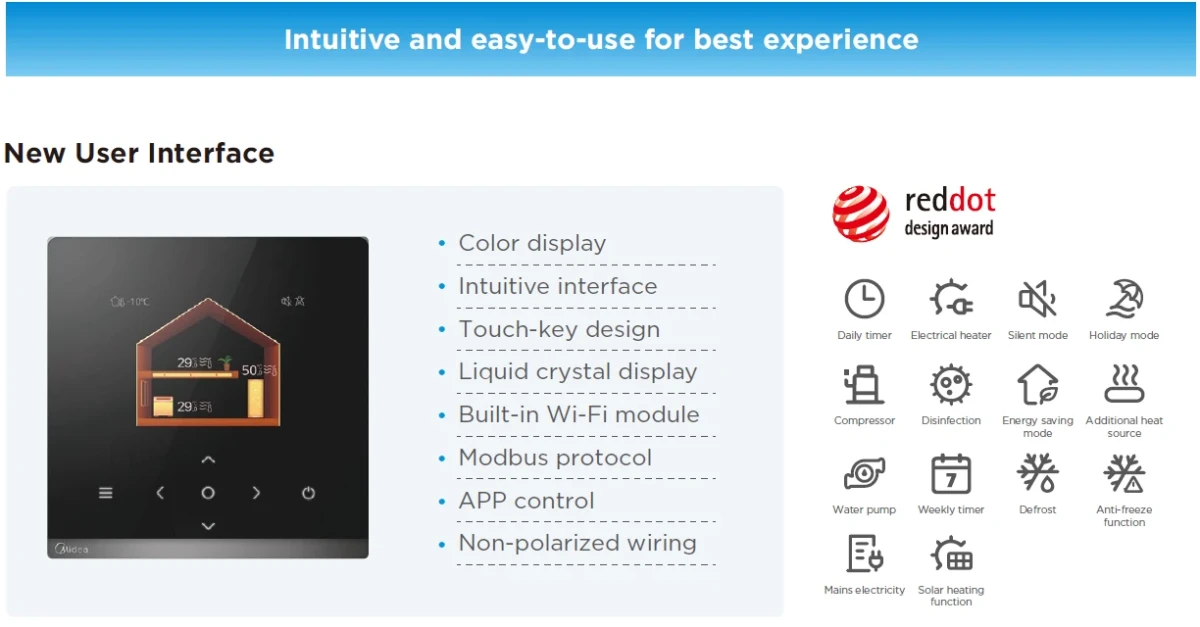 De Midea Nature-serie behaalt een seizoensrendement tot A+++ bij 35 °C en zelfs A+++ bij 55 °C. Hierdoor profiteert u het hele jaar door van maximale energie-efficiëntie, lagere energiekosten en een zo klein mogelijke ecologische voetafdruk.