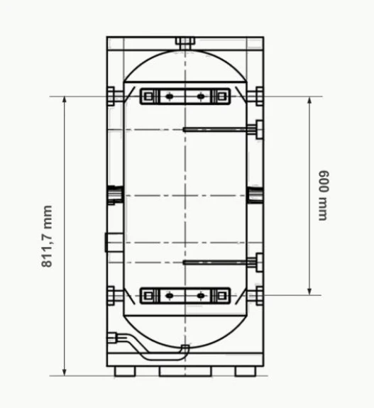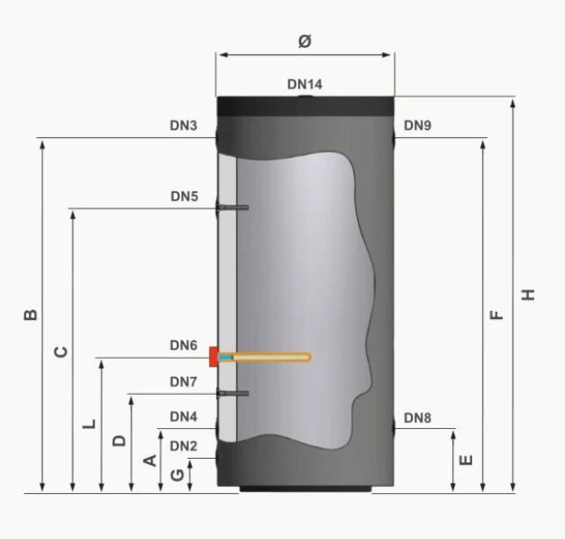 B-Series BT-100L/WM-C 100 liter buffervat met 4 zijaansluitingen en wandmontagebeugels.