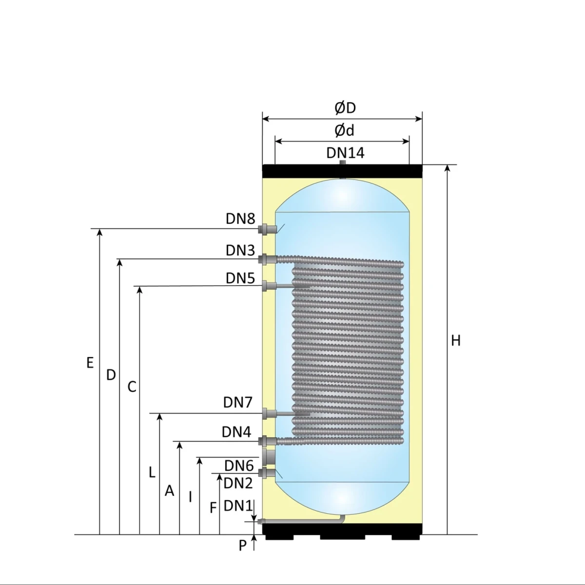 • Binnentank: Ø 470 mm, 1,0 mm Duplex 2205 RVS