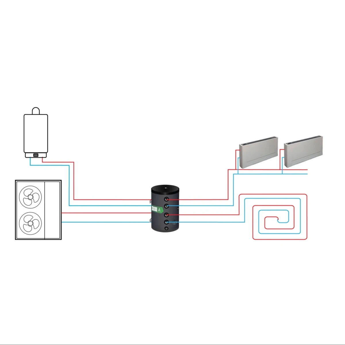 Ideaal voor compacte warmtepompinstallaties waar flexibiliteit, meerdere circuits en back-up integratie vereist zijn.