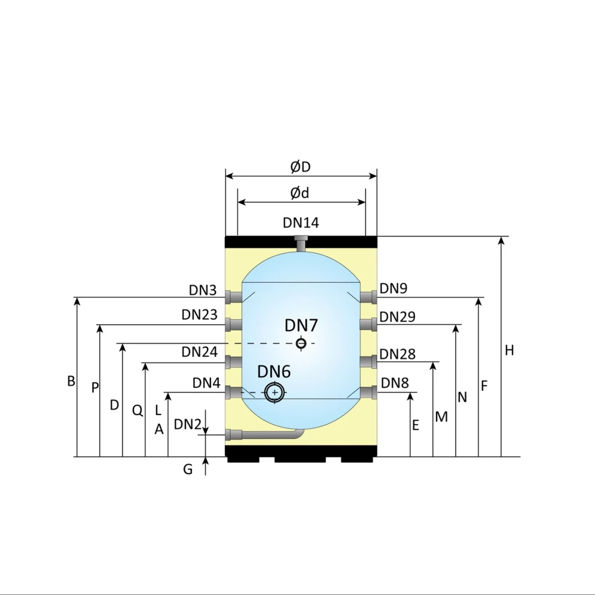 Nexus NBT 50L / WM (C8) Black – 50 Liter Buffervat met 8 Zijaansluitingen