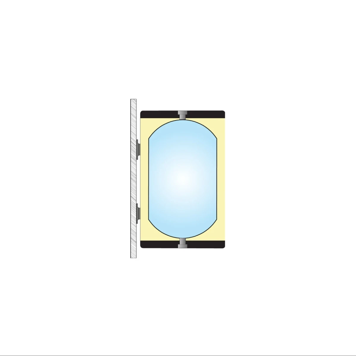 - Buitenmantel: Ø 380 mm, grijs plaatstaal