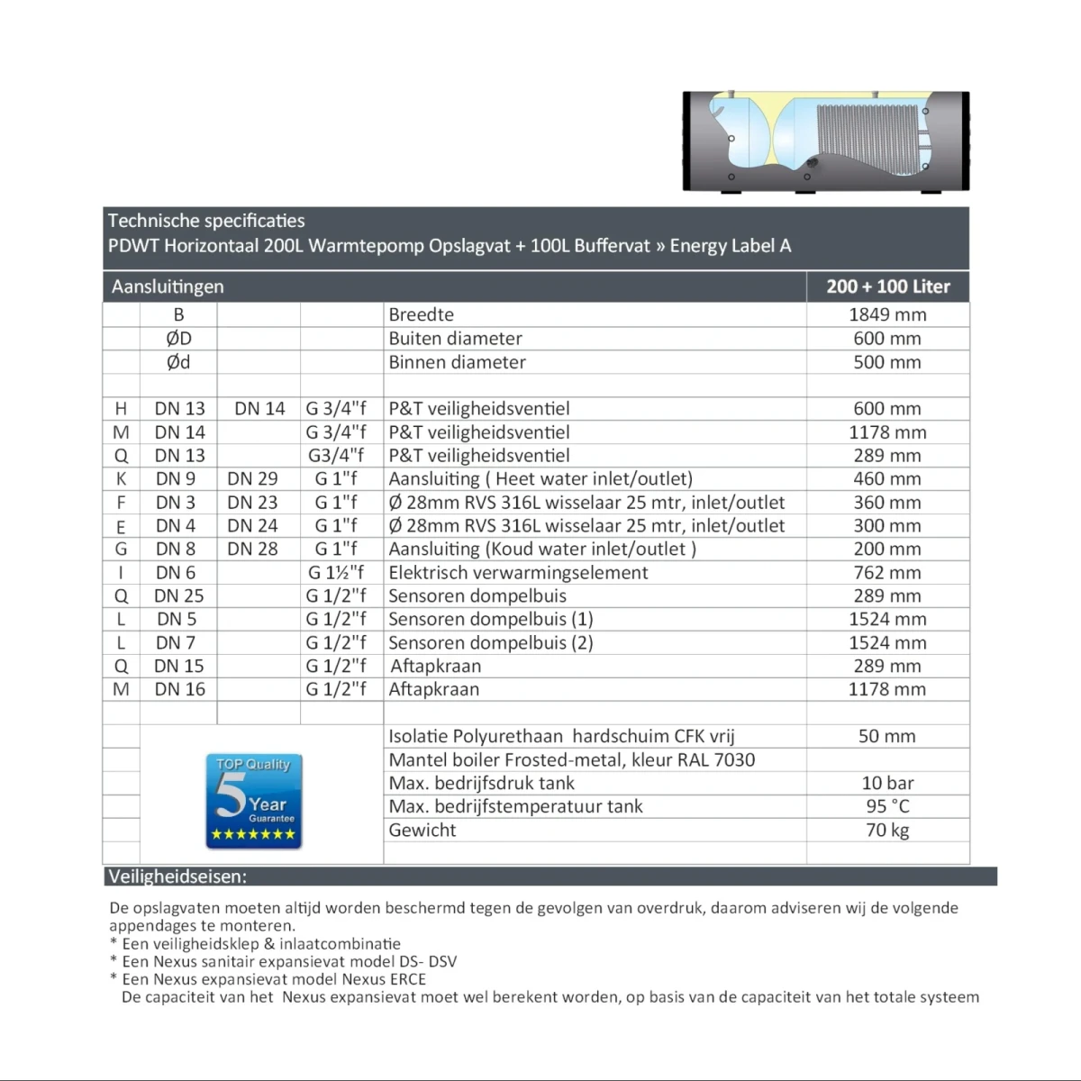 PDWT – 2-in-1 Hygiëneboiler & Buffer voor Warmtepompsystemen (25 mtr / RAL 7030)