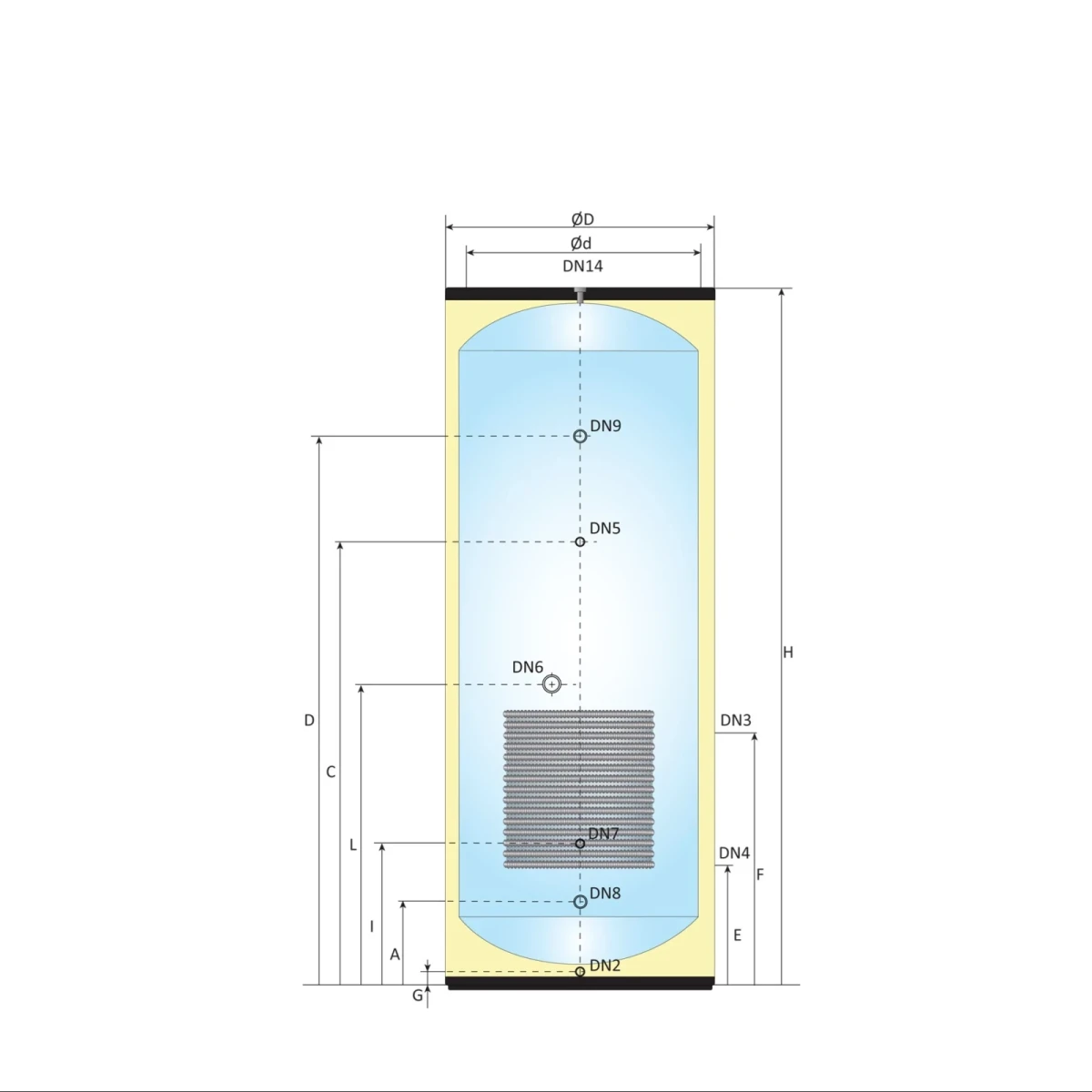 • Buitenmantel: Ø 900 mm, RVS roestvrijstaal SUS304