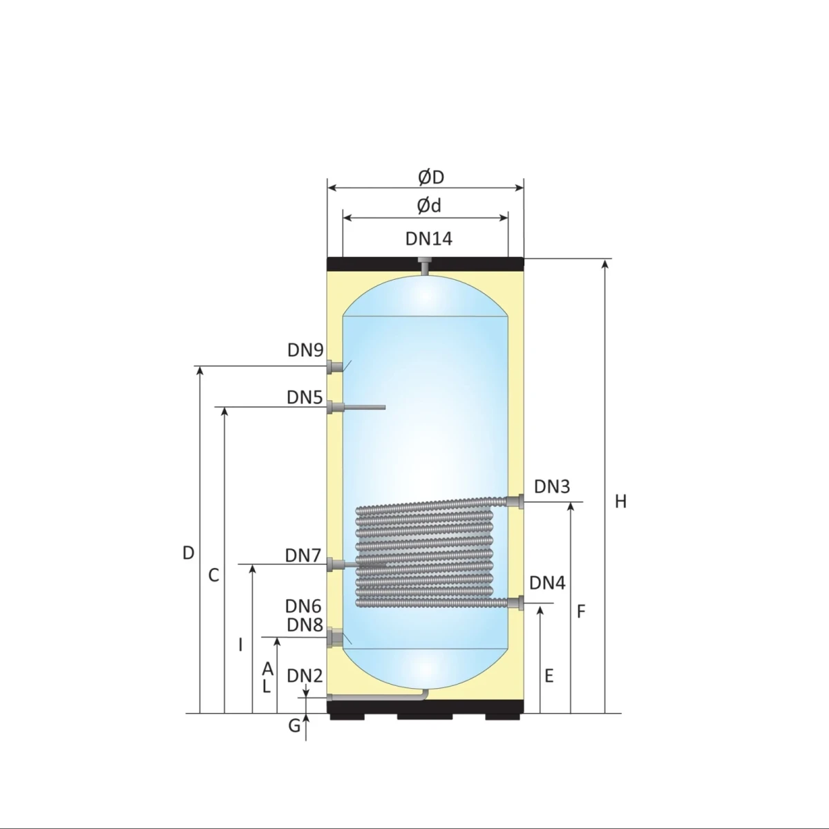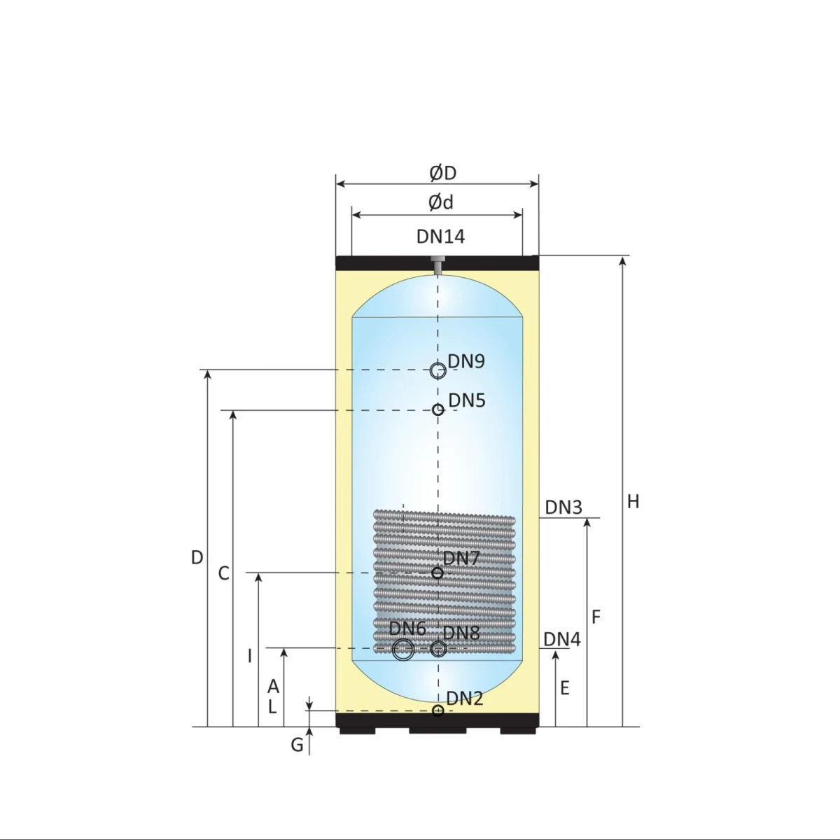 - Binnentank: Ø 500 mm, 1,0 mm Duplex 2304 RVS